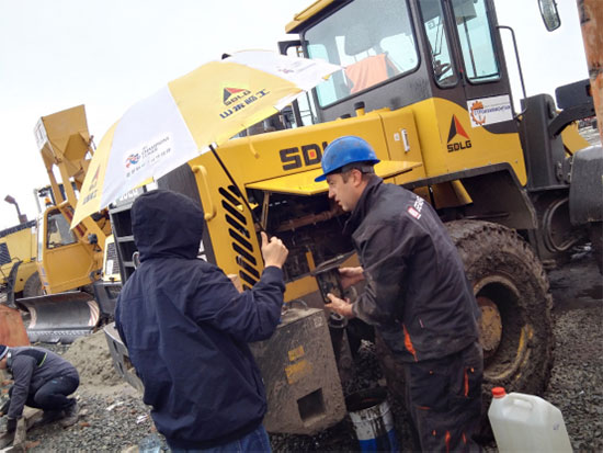 During the visit, the service staff made three-in-one inspection experience. SDLG provides free-of-charge machine maintenance for clients, free-of-charge maintenance training for operators and holistic troubleshooting for machines to eliminate potential problems.